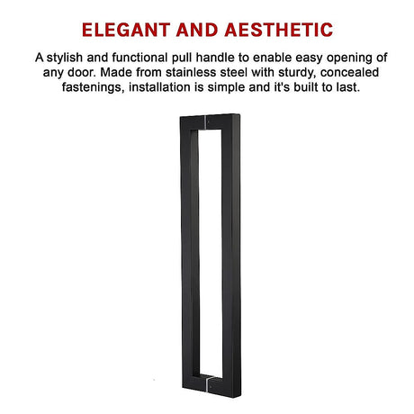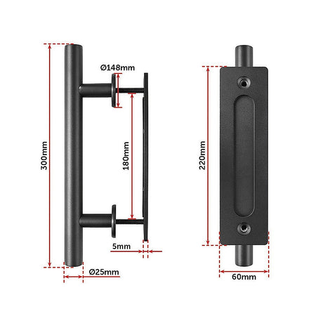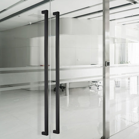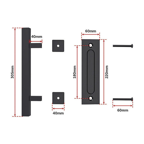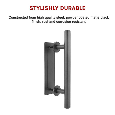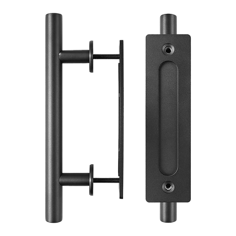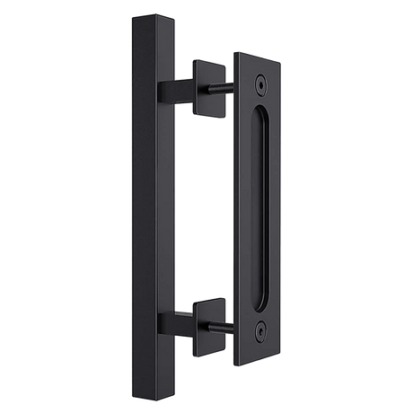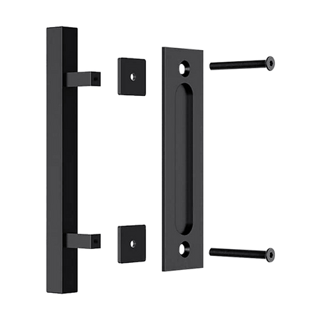 12" Square Pull and Flush Door Handle Set Black Barn Door Hardware