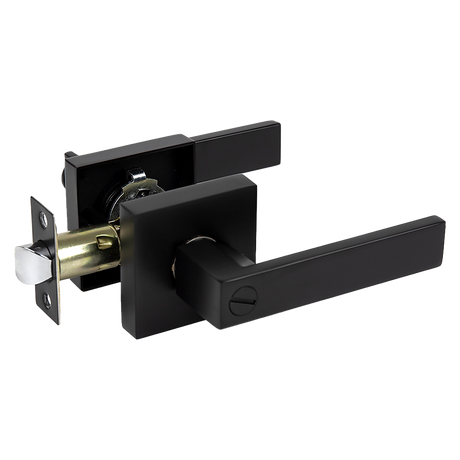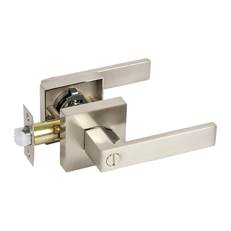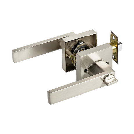 Door Handle Set Lever Privacy Function Square Satin Nickel