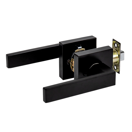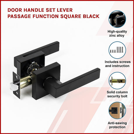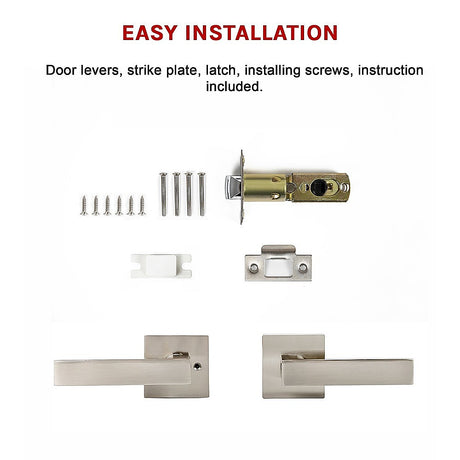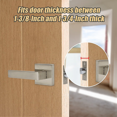 Door Handle Set Lever Passage Function Square Satin Nickel