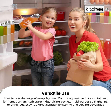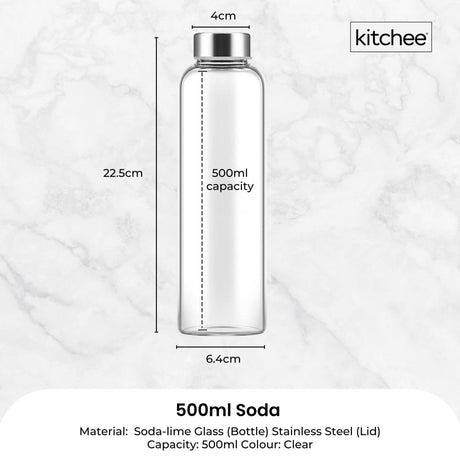 Kitchee 500ml Glass Water Bottle with Stainless Steel Lid - Set of 6 Drink Bottles