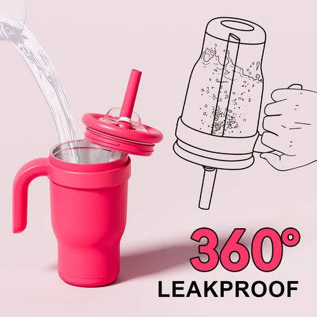 Rose Red 14oz Insulated Tumbler with Handle & Straw - 304 Stainless Steel Car Cup (Contrast Color)