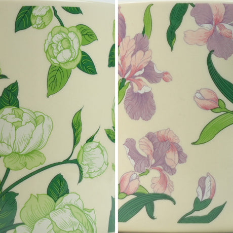 2X High-Fired Ceramic Porcelain Mug with Travel Lid 600ml Vintage Floral GREEN