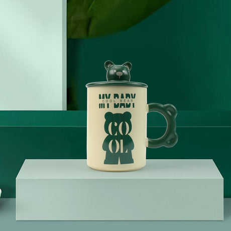2X High-Fired Ceramic Porcelain Mug Set with Lid 400ml Bear w Tea Spoon GREEN
