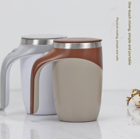 White USB Rechargeable Automatic Stirring Mug - 320ml, Magnetic Mixing Coffee Cup, 12x11x15cm