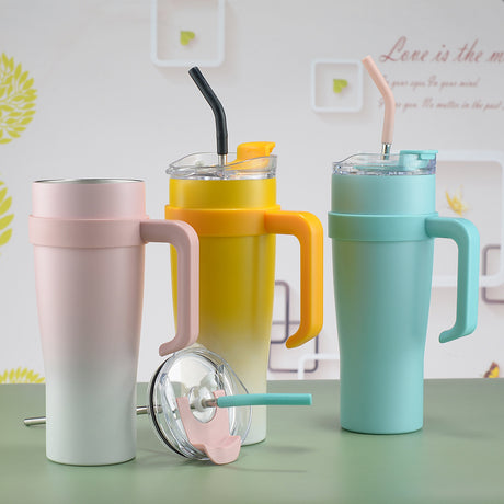 Blue 304 Stainless Steel 40oz Car Mug - Insulated Tumbler with Handle and Straw