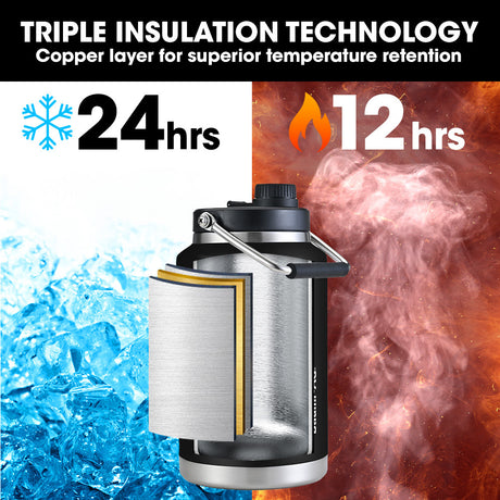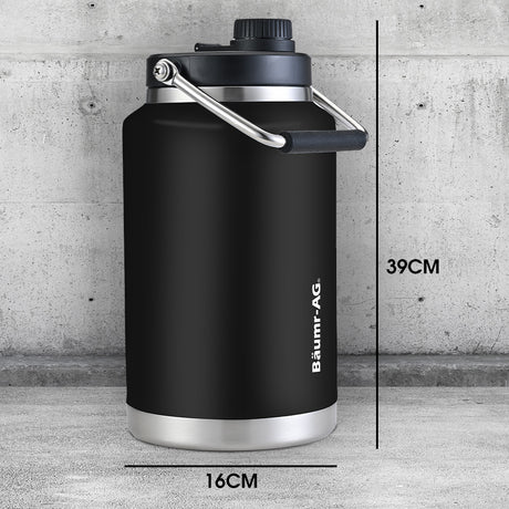 BAUMR-AG 3.8L Double Wall Insulated Stainless Steel Water Bottle, Drink Jug with Handle, Black
