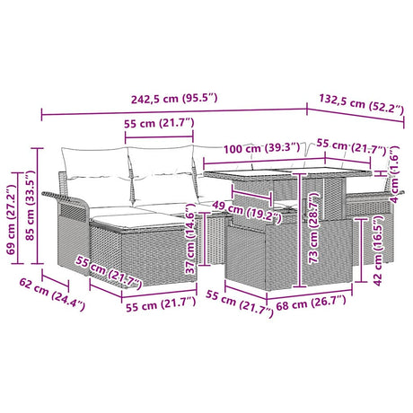 Garden Sofa Set with Cushion 7 pcs Grey Poly rattan