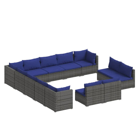 12 Piece Garden Lounge Set with Cushions Grey Poly Rattan