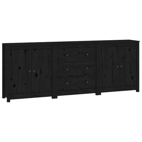 Sideboard Black 210x35x80 cm Solid Wood Pine