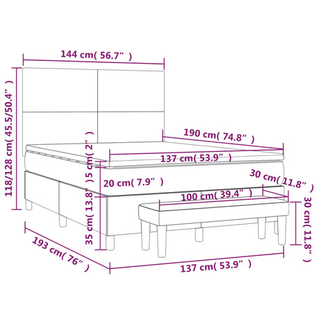 Box Spring Bed with Mattress&LED Dark Grey 137x187 cm Double Size Fabric