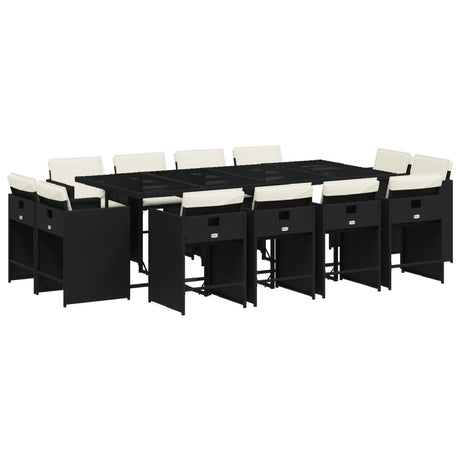 13 Piece Garden Dining Set with Cushions Black Poly Rattan