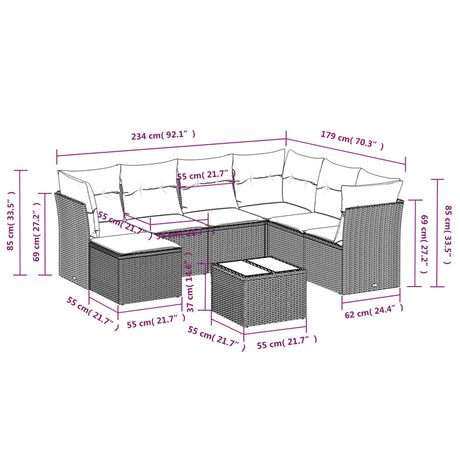 7 Piece Garden Sofa Set with Cushions Grey Poly Rattan