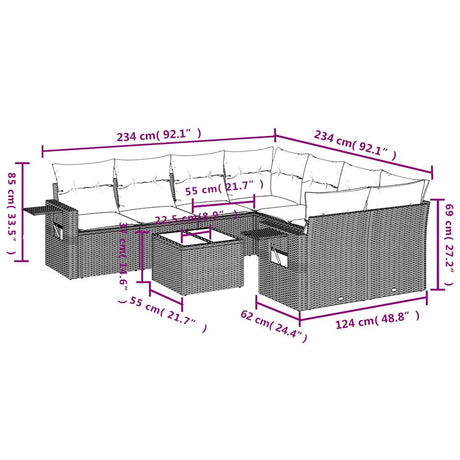 10 Piece Garden Sofa Set with Cushions Mix Beige Poly Rattan