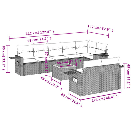 9 Piece Garden Sofa Set with Cushions Beige Poly Rattan