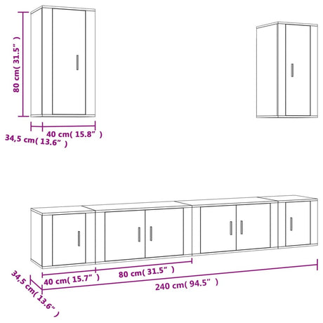 5 Piece TV Cabinet Set Grey Sonoma Engineered Wood