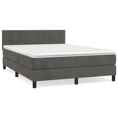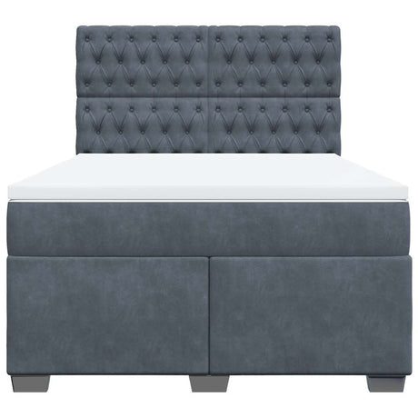 Box Spring Bed with Mattress Dark Grey Double Velvet
