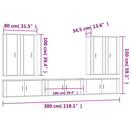 5 Piece TV Cabinet Set Smoked Oak Engineered Wood