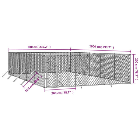 Outdoor Dog Kennel Silver 6x10x2 m Galvanised Steel