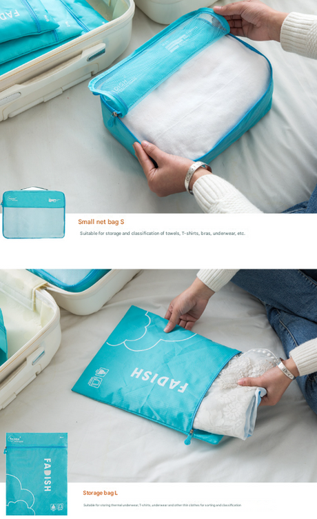 Blue Men Suit Garment Bag Zippered Dustproof Travel Organizer