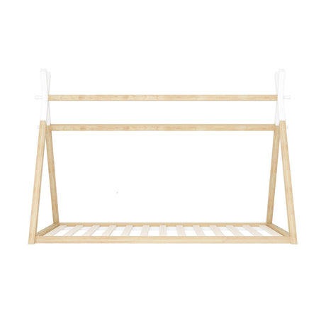 Oikiture King Single Kids Bed Frame Mattress Set Wooden Teepee House Beds