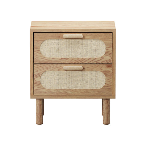 Oikiture Bedside Table 2 Drawers Rattan Natural