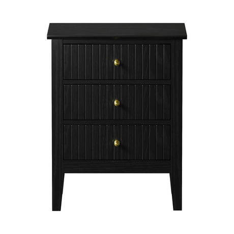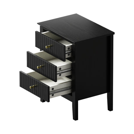 Oikiture Bedside Table 3 Drawers Side End Nightstand Black