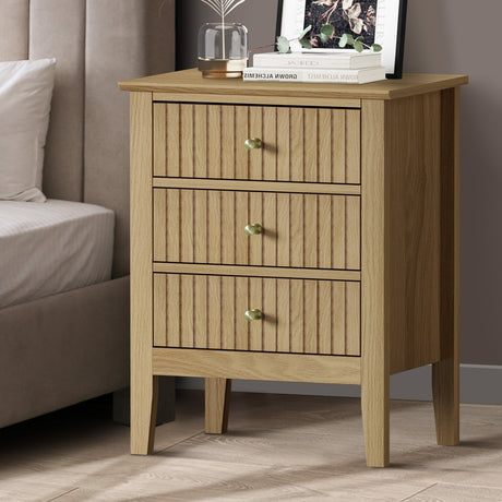 Oikiture Bedside Table 3 Drawers Side End Nightstand Natural