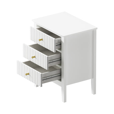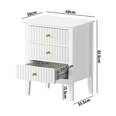 Oikiture Bedside Table 3 Drawers Side End Nightstand White