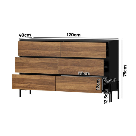 Oikiture 6 Chest of Drawers Cabinet Dresser Table Lowboy Walnut