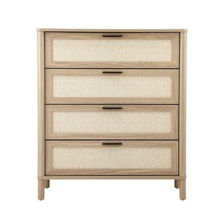 Oikiture 4 Chest of Drawers Rattan Dresser Natural
