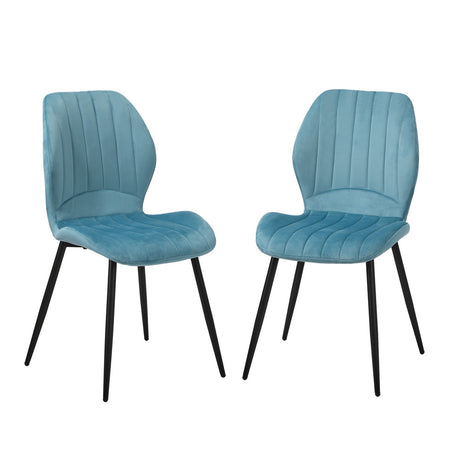 Oikiture Set of 2 Dining Chairs Padded Seat Armless Velvet Blue