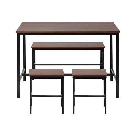 Oikiture Industrial Dining Table 4 Seaters with Kitchen Bench Chairs Natural