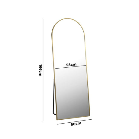 Oikiture Full Length Mirror Arched Free Standing Gold 166x60cm