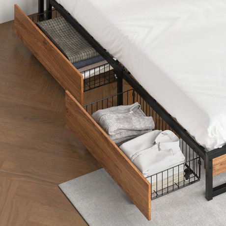 Oikiture 2x Bed Frame Storage Drawers with Wheels Metal Brown