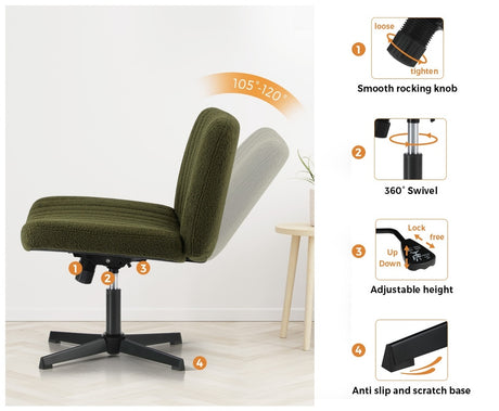Oikiture Mid Back Armless Office Chair Wide Seat Sherpa Green