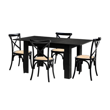 Oikiture 160cm Extendable Dining Table with 4PCS Dining Chairs Geometric Black