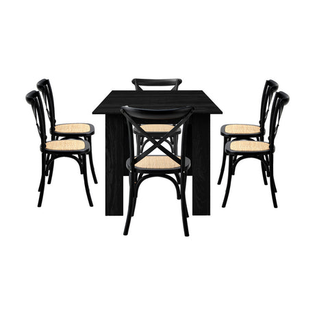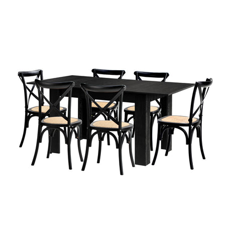 Oikiture 160cm Extendable Dining Table with 6PCS Dining Chairs Geometric Black