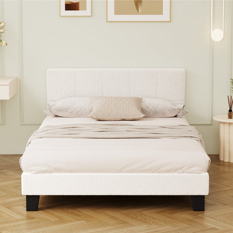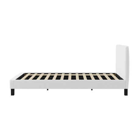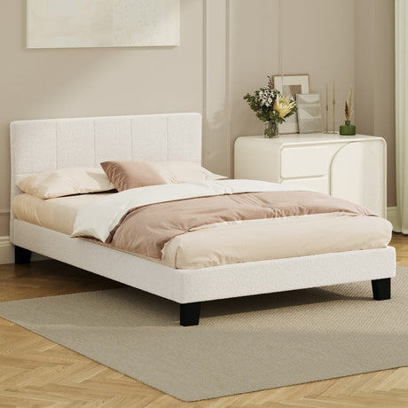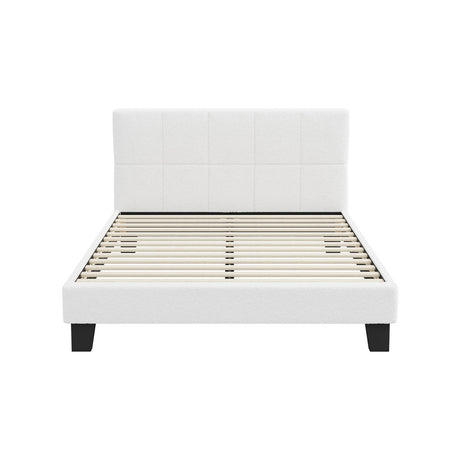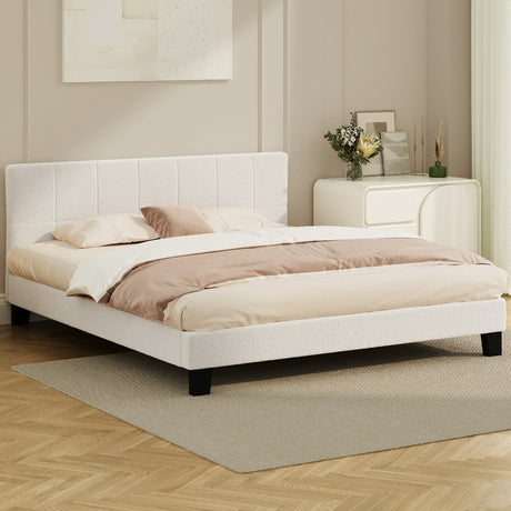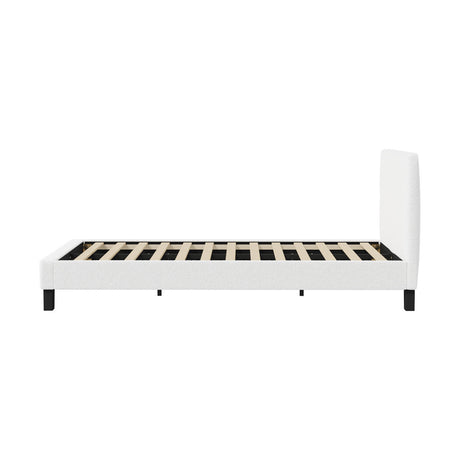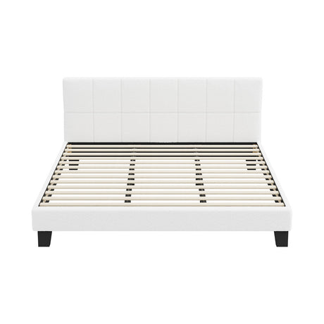 Oikiture Bed Frame Queen Size Base White Boucle TOFU