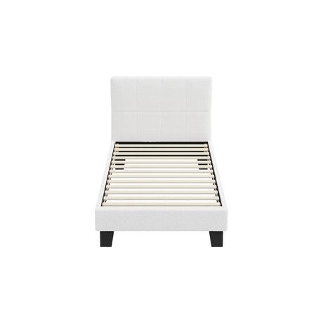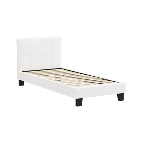 Oikiture Bed Frame Single Size Base White Boucle TOFU