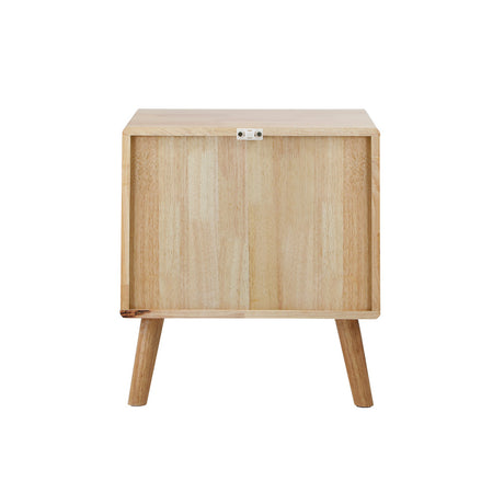 Oikiture Bedside Table 2 Drawers Storage Rubber Wood