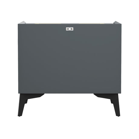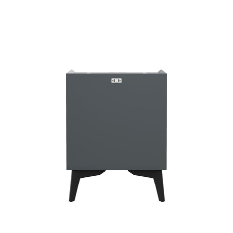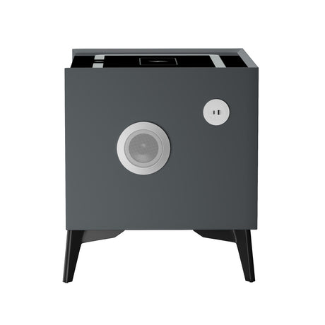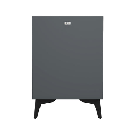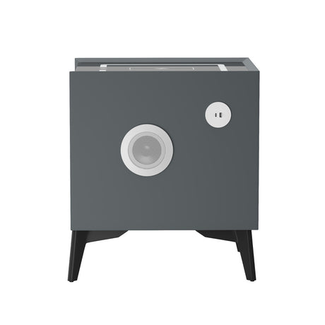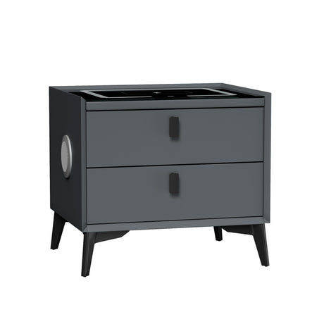 Oikiture Smart Bedside Table Wireless Charging LED 2 Drawers Grey