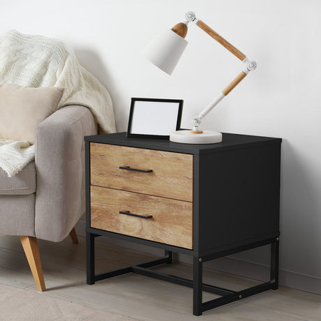 Oikiture Bedside Table 2 Drawers Storage Metal Industrial