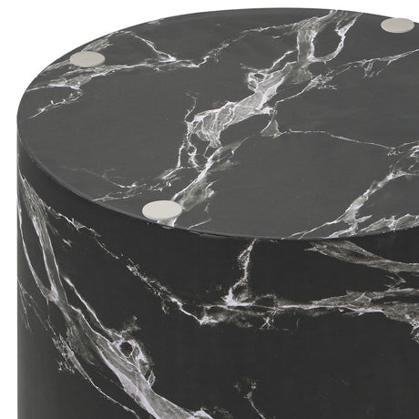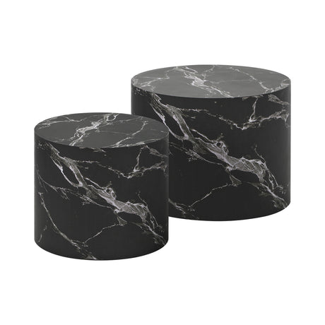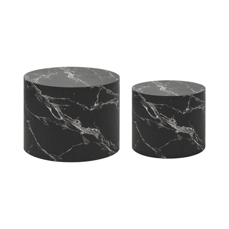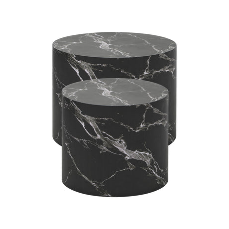 Oikiture Round Coffee Table Set of 2 Marble Effect Black