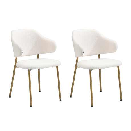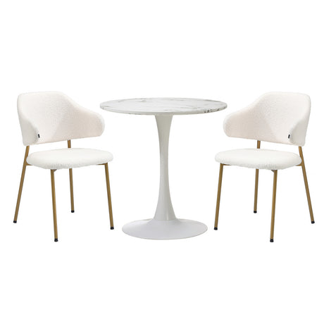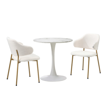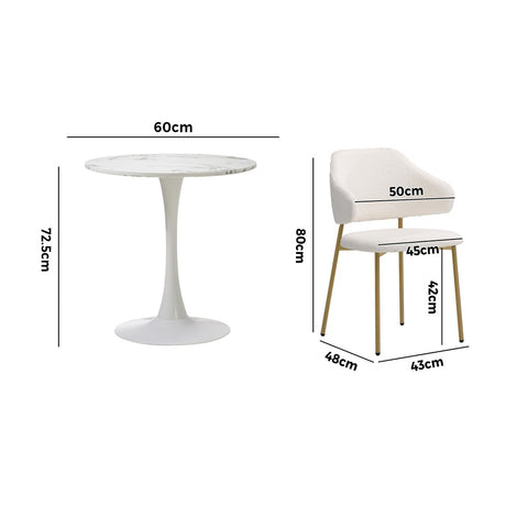 Oikiture 60cm Round Dining Table with 2x Dining Chairs Sherpa Gold&White