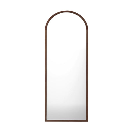 Oikiture Wooden Full Length Mirror 166x60cm Arched Floor Mirrors Brown
