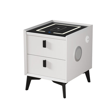 Oikiture Smart Bedside Table LED Wireless Charging 2 Drawers White