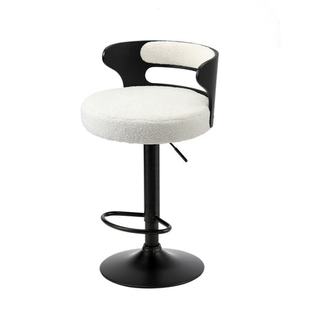 Oikiture 4x Bar Stools Gas Lift Swivel Chairs Wooden Boucle White