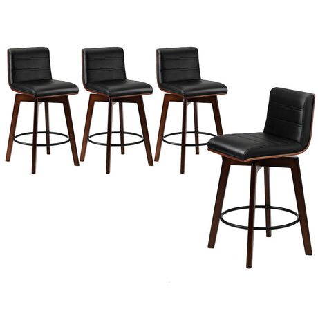 Oikiture 4x Wooden Bar Stools Swivel Chairs PU Leather
