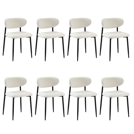 Oikiture 8x Dining Chairs Boucle Fabric Black&White