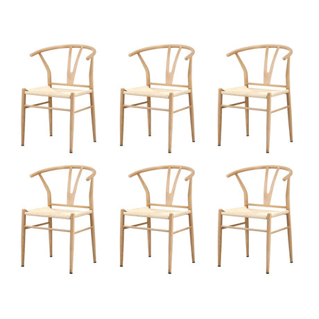 Oikiture 6x Dining Chair Metal Hans Wegner Chairs Wishbone Beige